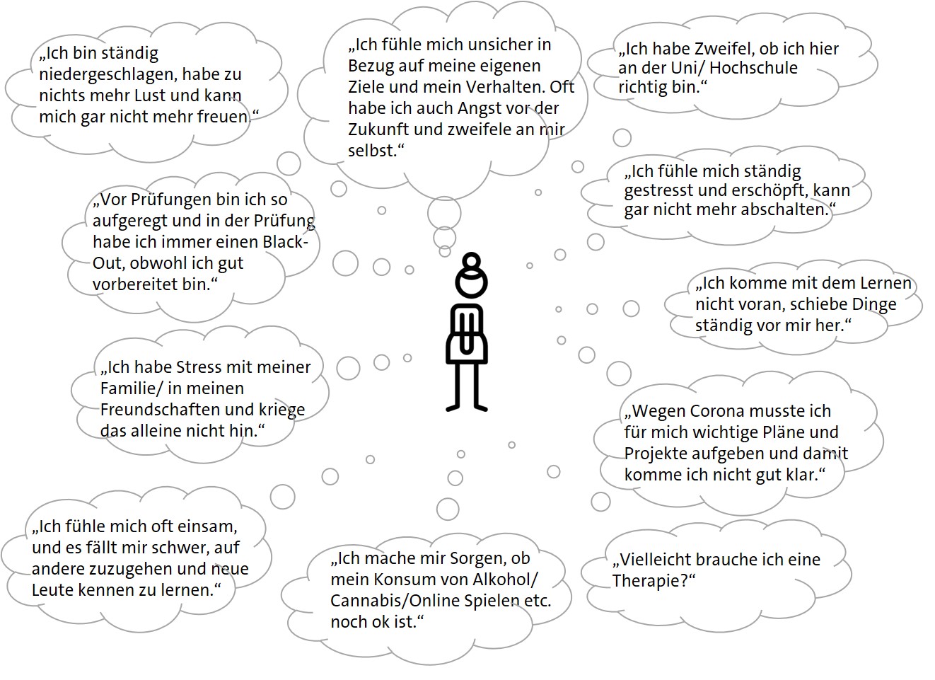 Typische Anliegen von Studierenden in der Psychologischen Beratung sind u.a.: