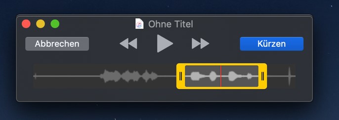 Bei Bedarf können Sie die Aufnahme noch kürzen, d.h. am Anfang und/oder Ende etwas abschneiden.