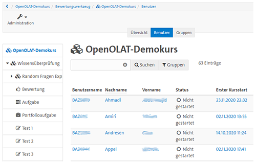 Achtung: OpenOlat kennt nur Personen, die sich bereits einmal an der Lernplattform angemeldet haben!