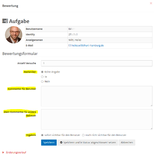 - Resultate einsehen, Feedback geben und abschließende Bewertung vornehmen