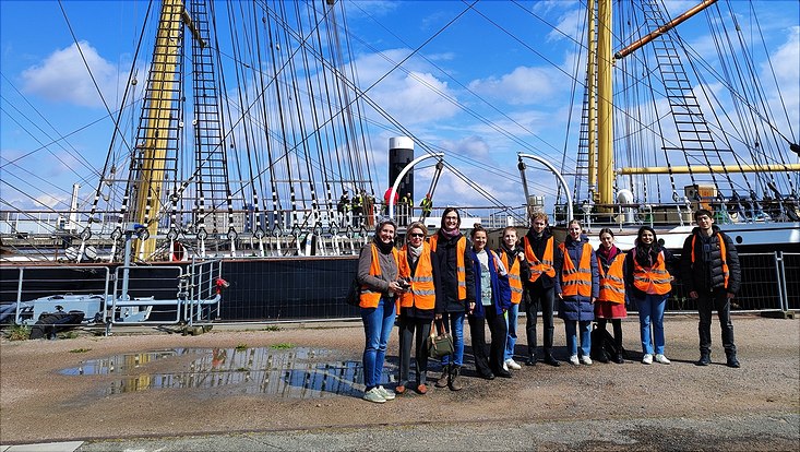 After 34 voyages around Cape Horn, 2 world wars, and several transformations—first as a boarding school ship and later as a museum in New York—the PEKING returned to its home port in Hamburg in 2017. Following extensive restoration work, this historic 4-masted barque is now open to visitors. Several smaller groups of Deutschlandstipendium scholarship holders and sponsors took advantage of the opportunity to learn fascinating details about the ship’s history and engineering from an experienced sailor.