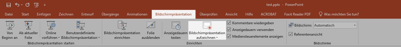 How do I record a presentation in Office 2019 auf?