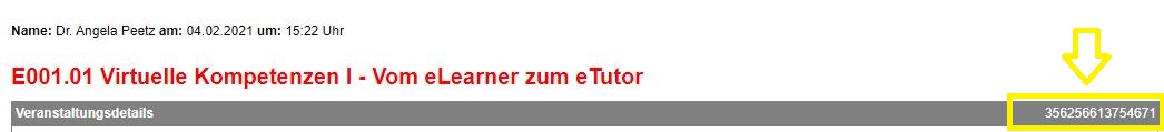 - The (STiNE) course event ID is not the course event number prominently displayed next to the title of your event. Since the course event number does not change from semester to semester for identical courses, it is not suitable for the unique assignment of cohorts. Therefore, the unique course event ID that remains the same across all semesters is used.