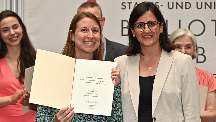 In addition to the University of Hamburg, the Ministry of Science, Research and Equalities also honors particularly excellent university learning opportunities every year. This year’s awards took place on 21 July 2025 in the State and University Library Carl von Ossietzky. Seven University of Hamburg lecturers also received awards.
