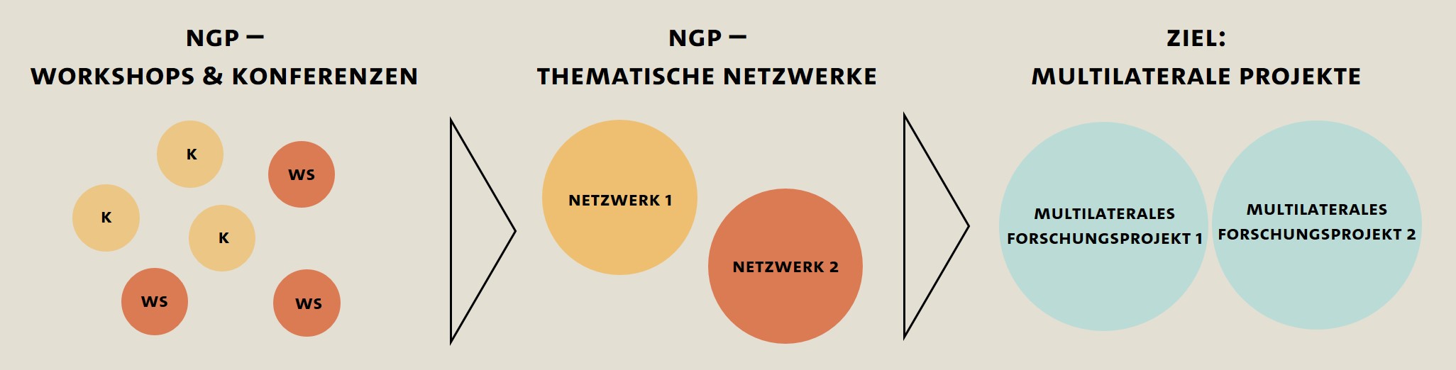 Die Next Generation Partnerships (NGP) zielen auf den Auf- und Ausbau langlebiger multilateraler Forschungskooperationen ab. Bislang beruht internationale Zusammenarbeit im Wesentlichen auf bilateralen Kooperationen. Mit der Erweiterung um multilaterale Verbünde können Synergien stärker genutzt und wissenschaftliche Potenziale voll ausgeschöpft werden.