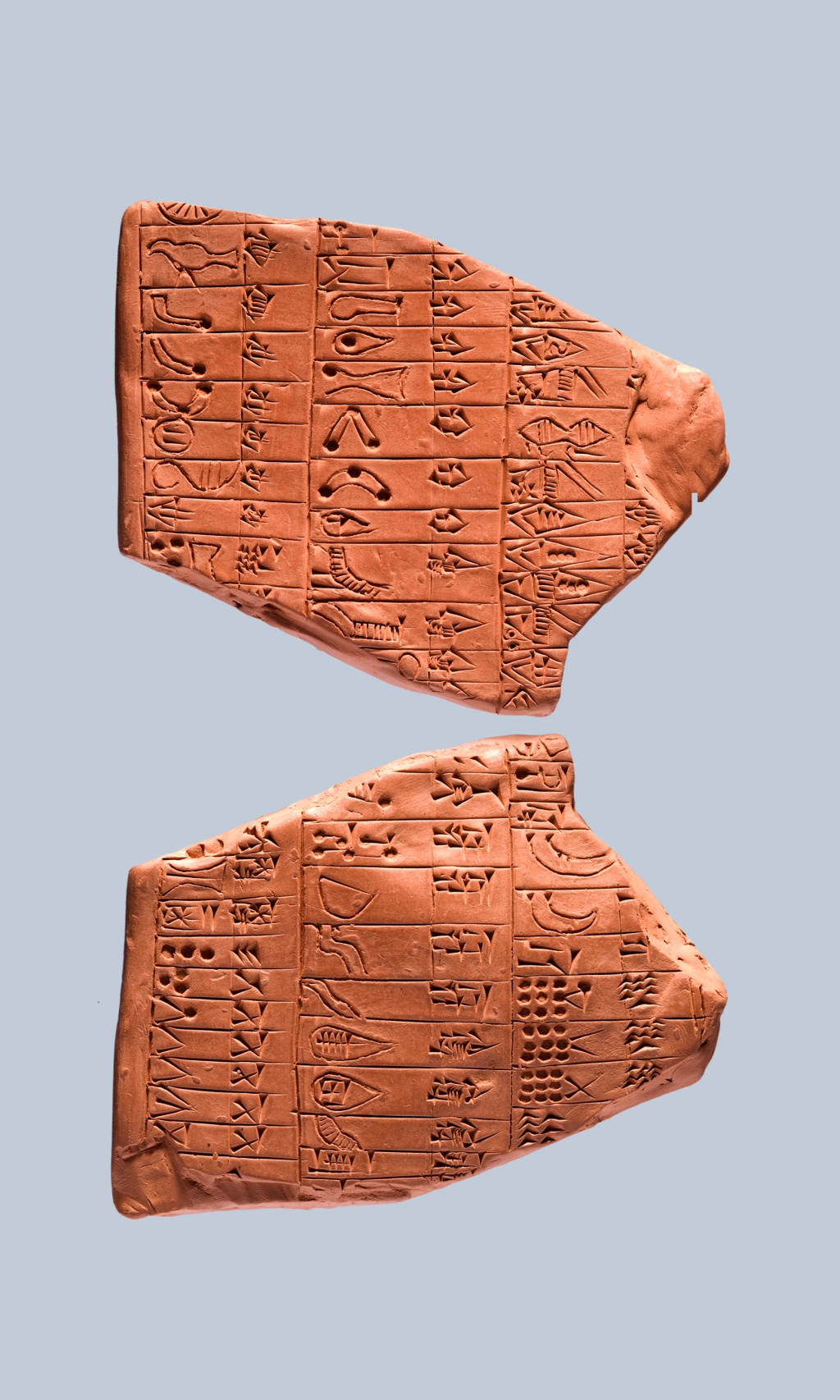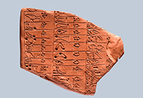 Tontafel mit Keilschriftzeichen aus dem im 7. Jahrhundert v. Chr. (Reproduktion in rotem Ton von Cécile Michel)