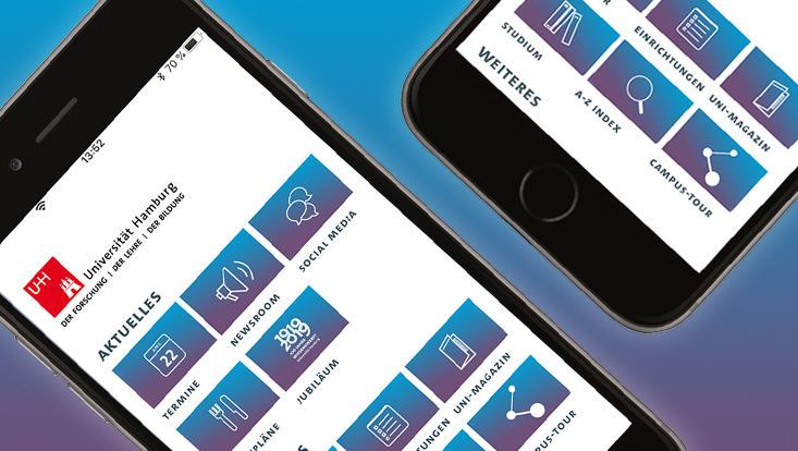 Die App „UHH mobile“ ist ein Angebot für Studierende und Beschäftigte der Universität Hamburg. Sie bietet einen schnellen Zugang zu den mobilen Serviceleistungen der Universität.