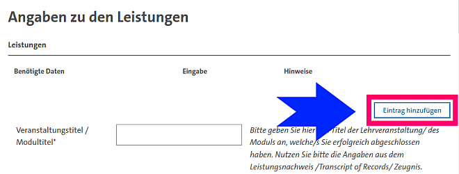 Wenn Sie Leistungen für diesen Bereich anerkennen lassen möchten, gehen Sie am besten so vor: